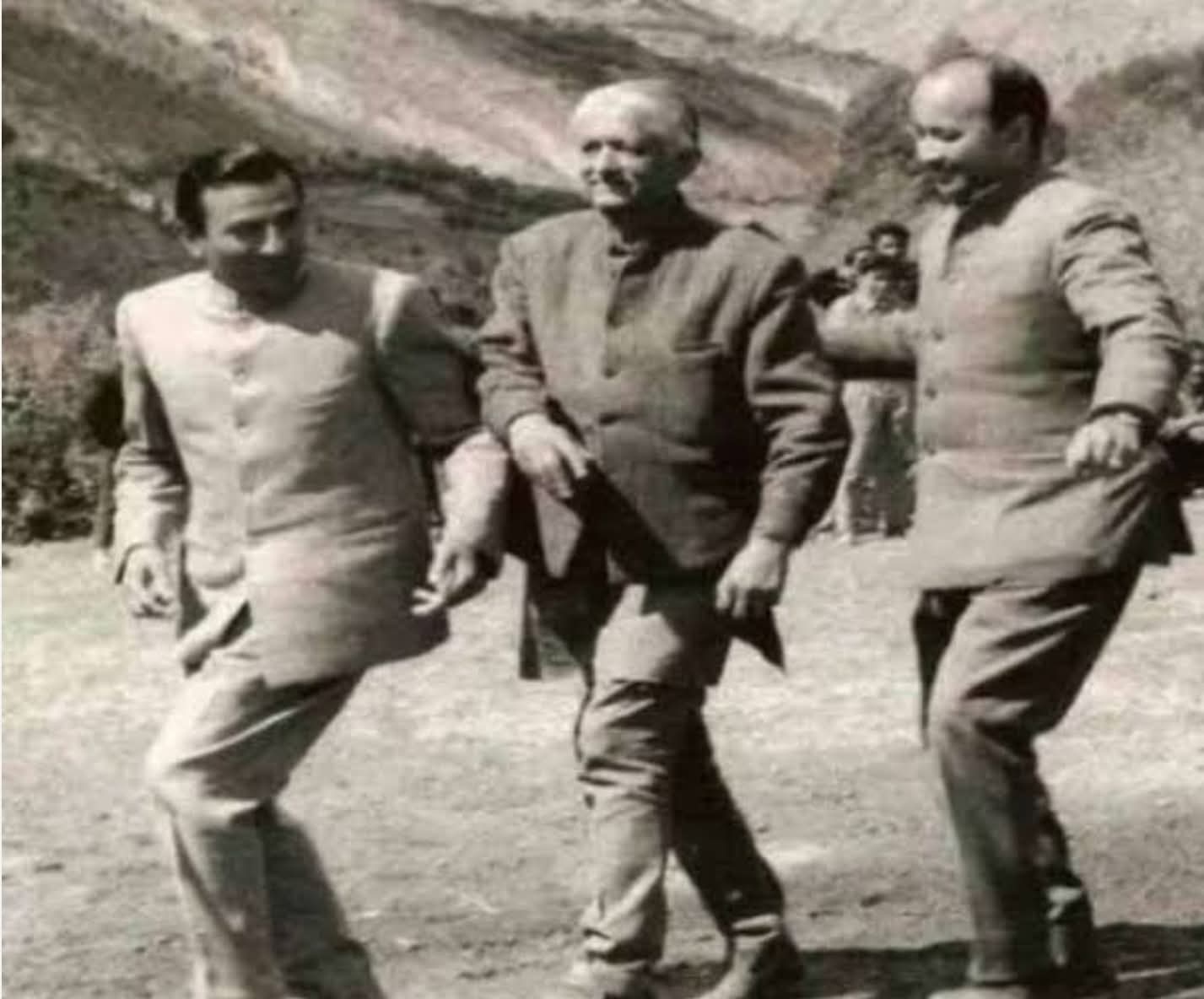 (फ़ोटो में ठाकुर राम लाल, हिमाचल निर्माता यशवन्त सिंह परमार, वीरभद्र सिंह नृत्य की मुद्रा में)